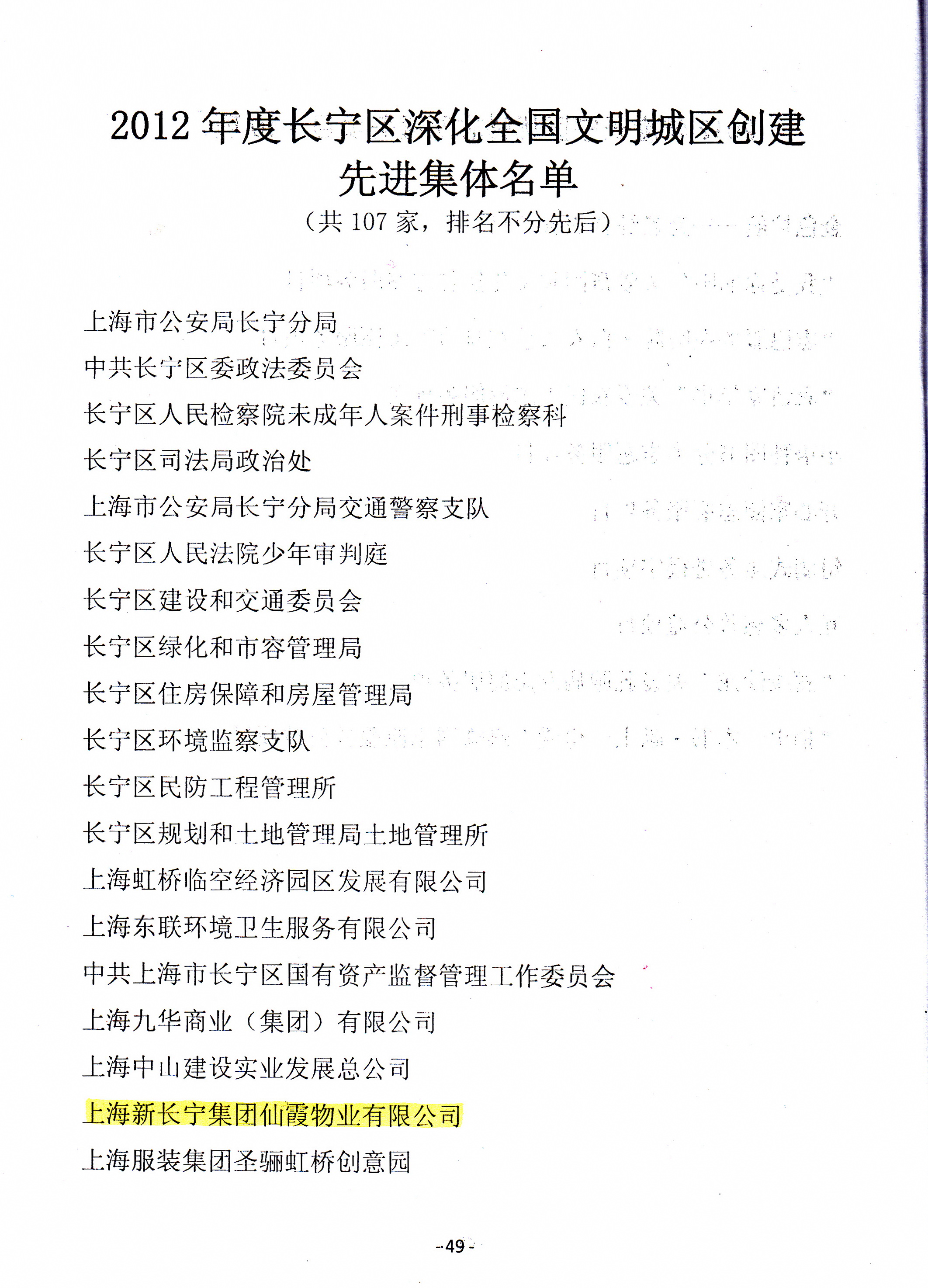 2011—2012年度(第十六届)上海市文明单位征求意见名单仙霞物业榜上有名
